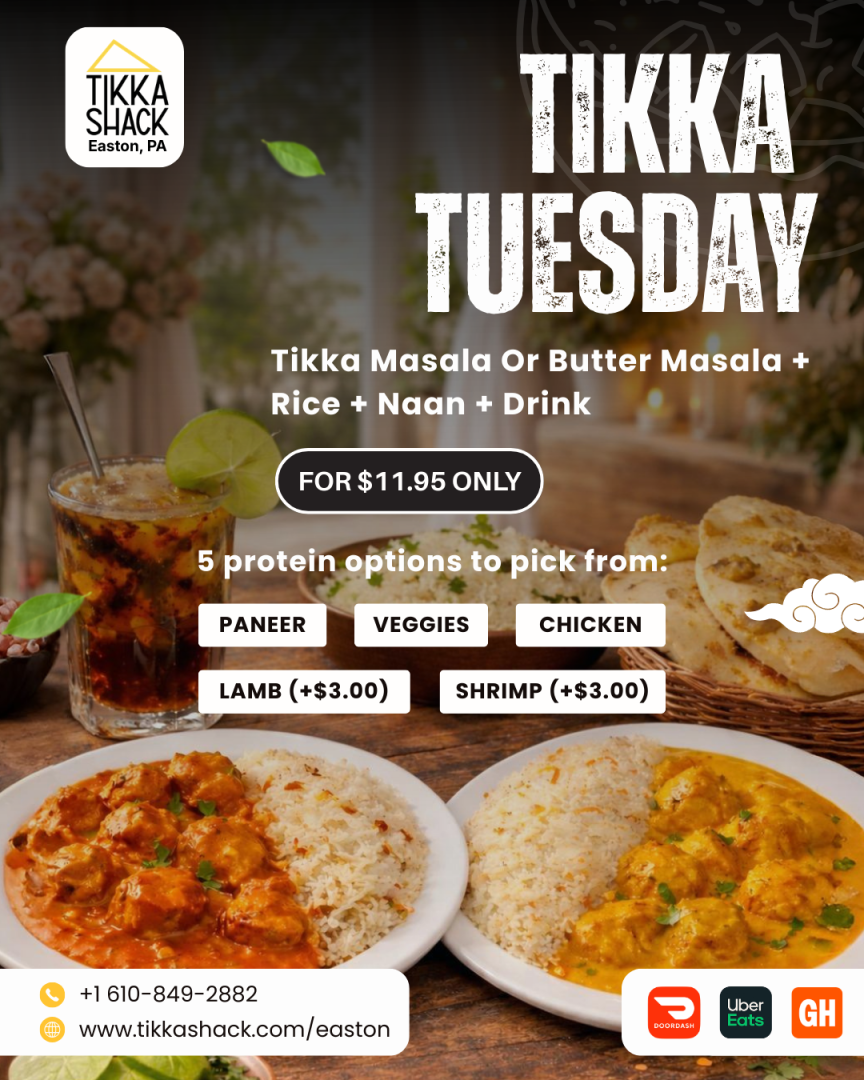 Tikka Masala or Butter Masala + Rice + Naan + Drink at JUST $11.95 (cannot be combined with other offers or discounts)