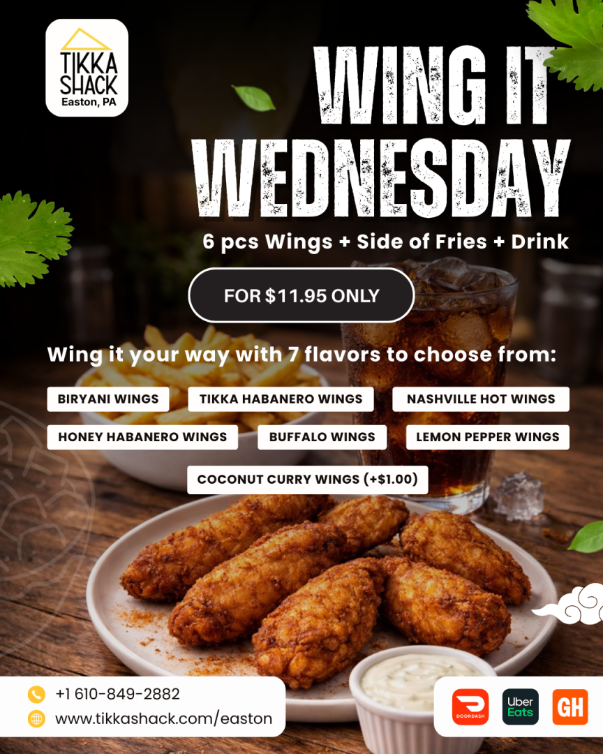 6 pcs Wings (variety of flavors to choose) + Side of Fries + Drink at JUST $11.95 (cannot be combined with other offers or discounts)