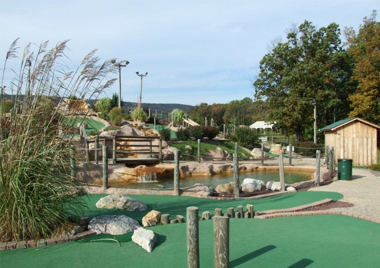 Bear Rock Junction was built to be a destination with two 18 hole mini golf courses for a total of 36 holes. Each course is different in layout and both are very challenging. Both have a par rating of 48 with the highest par per hole being 4. Landscaping and elevation changes on the course are not to be found anywhere else in the area. It takes about 45 min to an hour to play each course.