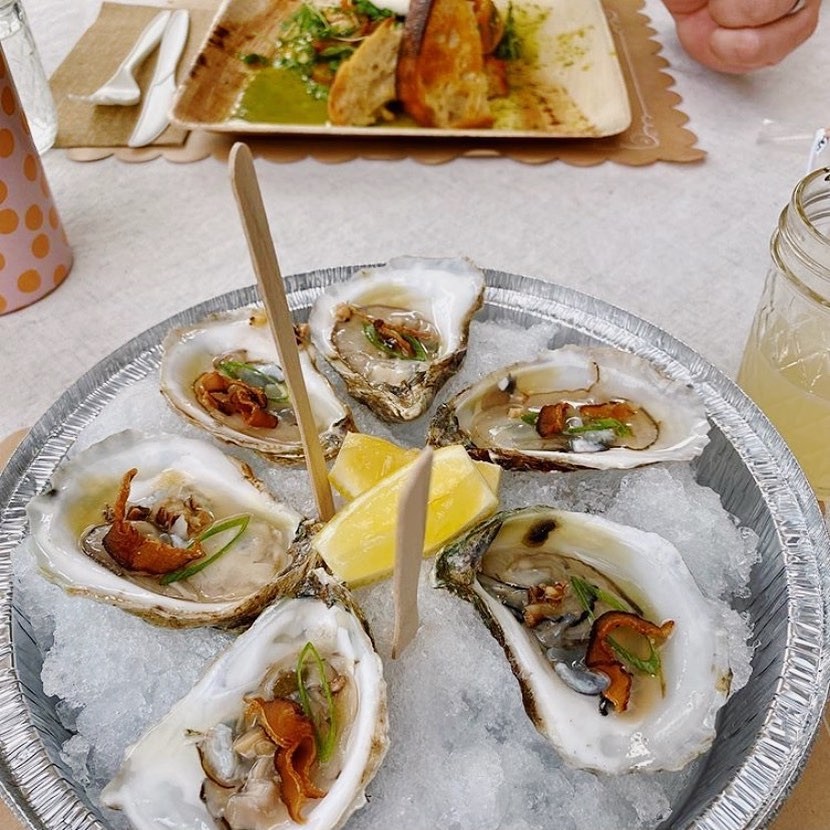 - Chilled Island Creek oysters (roasted shiitake mignonette, crisp shiitake, scallion, and lemon)