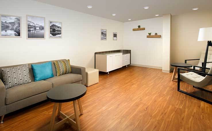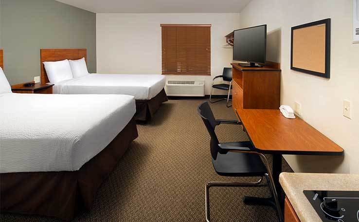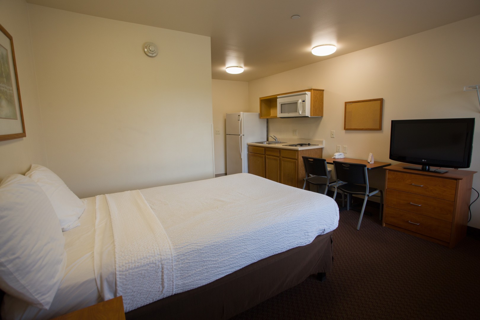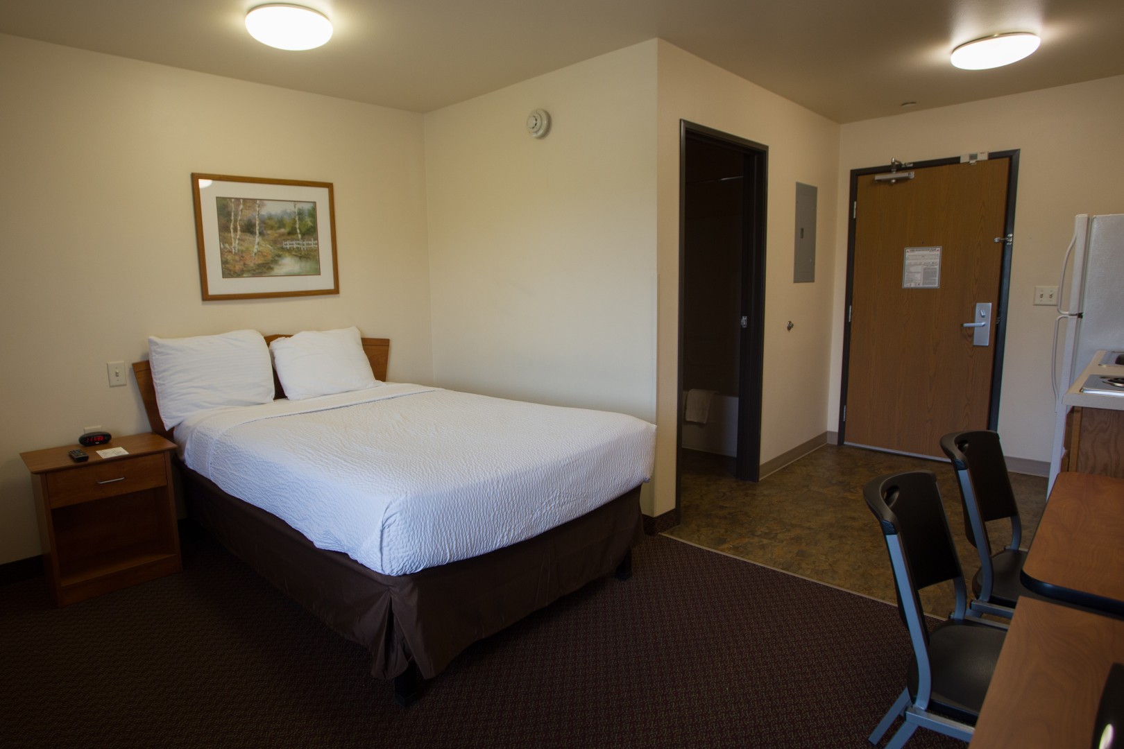 Guests have a choice of three suite types, accommodating between one and four people, all of which include in-suite kitchens with a full-size refrigerator and freezer, cupboard and counter space, microwave, prep sink, and two-burner stove top. It’s a smoke-free, clean, comfortable environment, and is accompanied by a professional and friendly staff. All guests have access to free Wi-Fi, guest laundry room, and vending. ADA-compliant rooms are available.