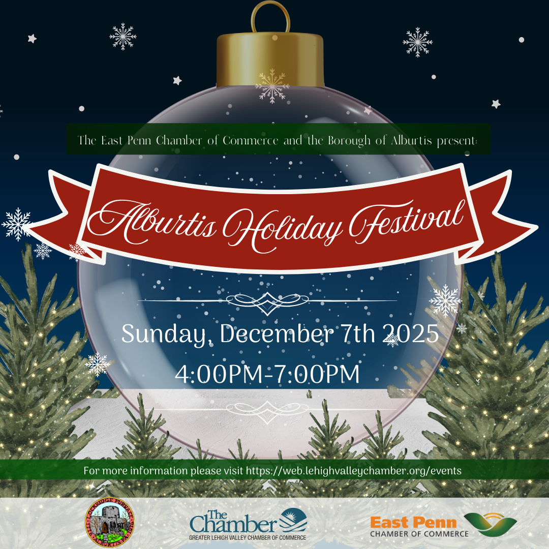 The East Penn Chamber of Commerce is thrilled to once again partner with the Borough of Alburtis for their annual Holiday Festival and Tree Lighting Ceremony! This beloved community tradition brings together residents, families, and local businesses for a full day of holiday cheer throughout the borough.