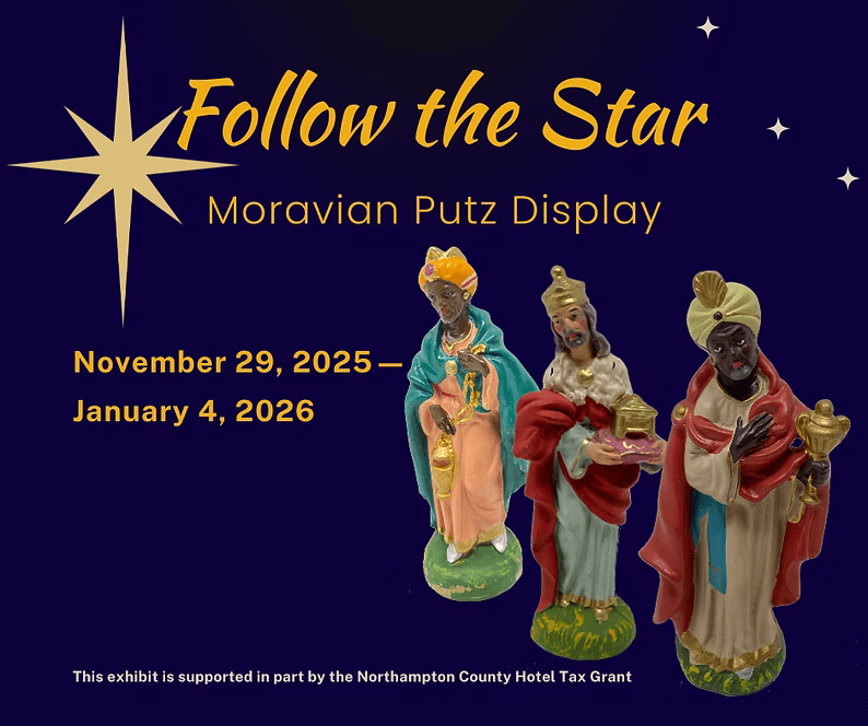 The exhibition will be open daily through January 4, 2026. The Moravian Historical Society will be closed on December 24, 25, 26, and 31, 2025, and January 1, 2026.