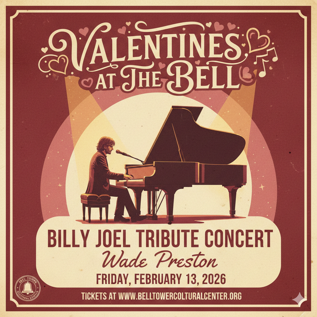 Be it romantic, platonic, or atomic, we are celebrating LOVE IN ALL IT’S VARIATIONS! So bring a partner, friend or group of favorite friends to enjoy a delcious lazagna dinner & glass of wine in the Bell’s café, to be followed by a special evening of songs & tribute to the Piano Man, Billy Joel!