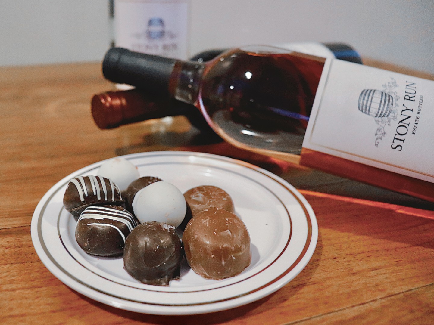 Bring your valentine to the winery and enjoy an assortment of four handcrafted chocolates paired with your choice of a dry or sweet wine flight.