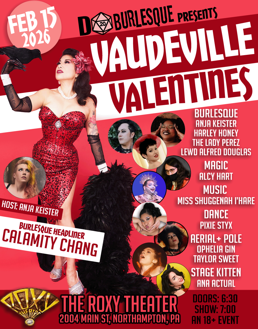 Join D20 Burlesque as their founder, Anja Keister brings her NYC founded show to her hometown of Northampton, PA for the first time ever. Come celebrate Valentine’s Day with a variety of performances that will have your heart racing. Expect not only burlesque, but dance, magic, and pole performances as well.