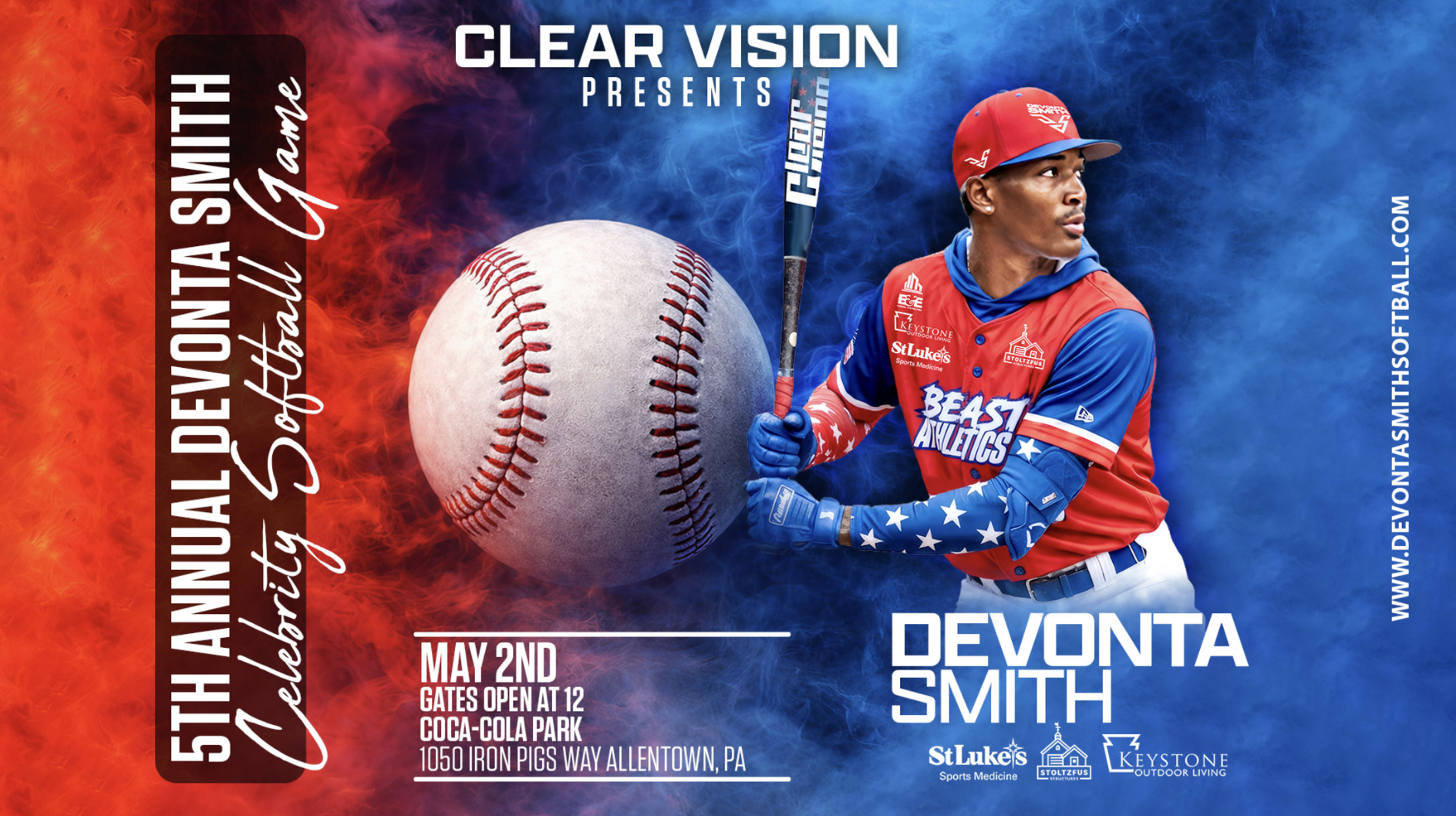 The Lehigh Valley IronPigs and Clear Vision Marketing group are excited to announce that the 5th annual Devonta Smith and Friends Celebrity Softball Game will take place at Coca-Cola Park in Allentown, PA on Saturday, May 2nd.