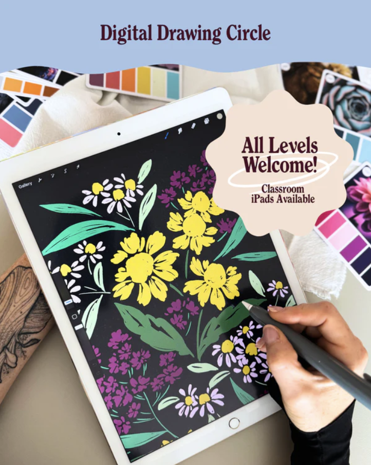 A community that loves art + tech • iPads & Apple Pencils provided for classroom use.
