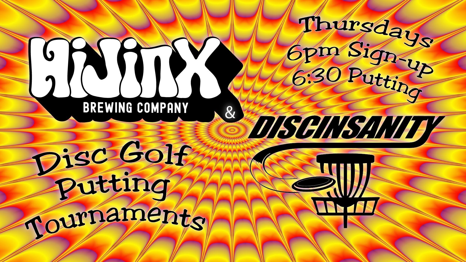 HiJinx and Discinsanity have come together to present a weekly disc golf putting tournament.