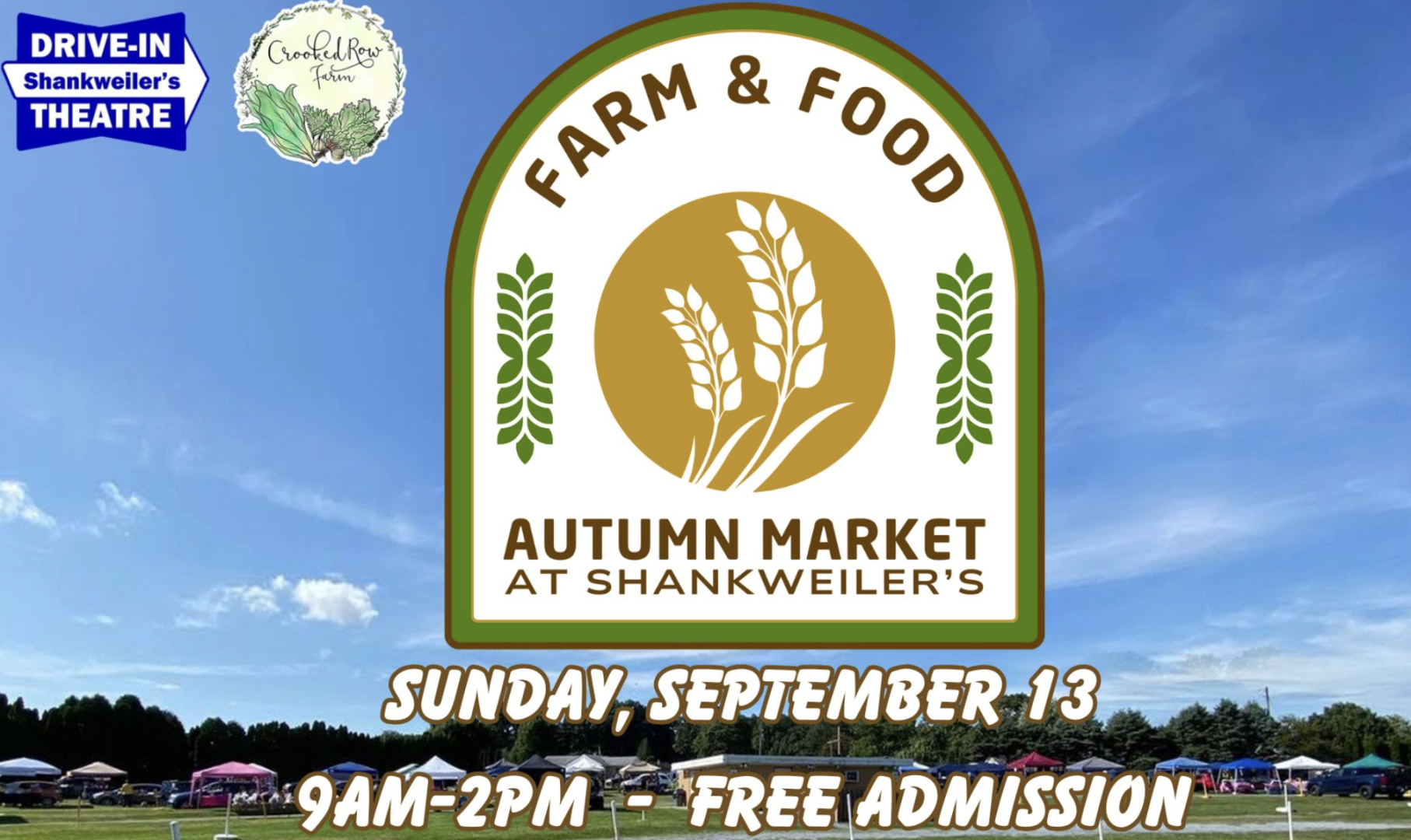 The Farm & Food Autumn Market is a daytime vendor event held outdoors at Shankweiler's Drive-In Theatre in Orefield, PA, on September 13, 2026 from 9AM-2PM.