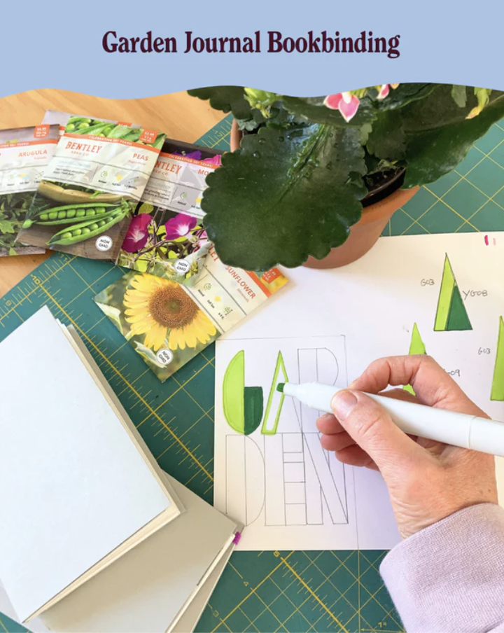 In class, students will have the opportunity to create two hand bound journals with options to customize the pages and the cover. We'll provide graph and dot paper, small envelopes for seeds, and a variety of botanical papers and washi tape to do some artful collaging. You'll leave with a truly custom piece, plus the knowledge to create handmade books for yourself or others, with tons of variety!