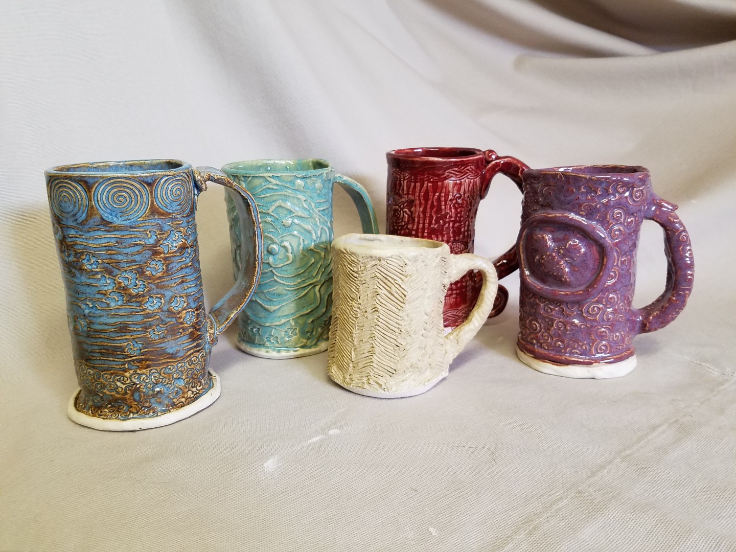 Choose your project: a textured coffee mug, a wine chiller (store it in the freezer, slip in your bottle, keep your wine cold all night), or a wine coaster. Virginia guides you through every step — shaping, texturing, and finishing your piece by hand. Before you leave, pick your glaze color. We handle the firing at our home studio kiln and have your finished, food-safe piece ready for pickup in 3–5 weeks.
