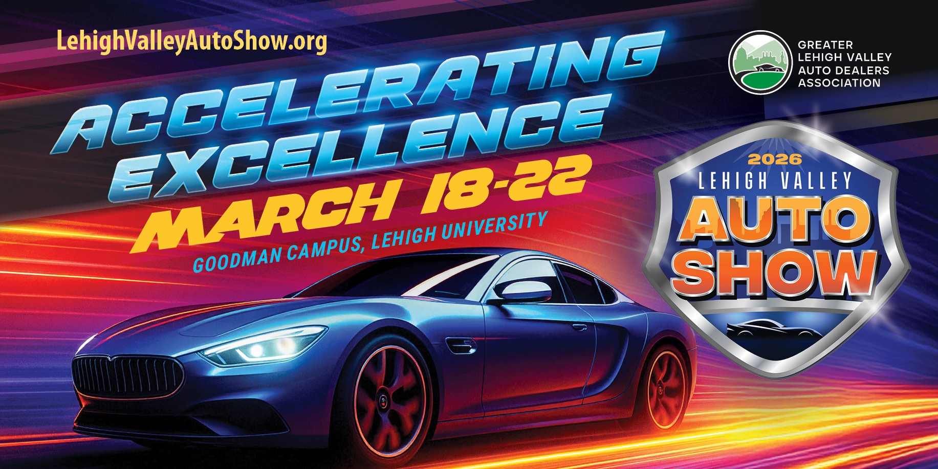 The Greater Lehigh Valley Auto Dealers Association presents the auto show March 18–22, 2026.