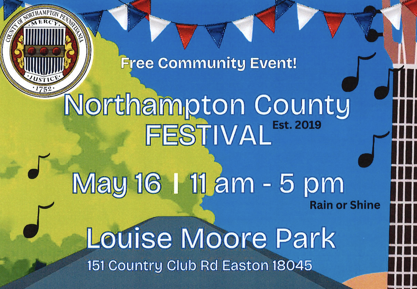 Join Northampton County at the beautiful Louise Moore Park in Easton on May 16, 2026 for a day of free, community fun!