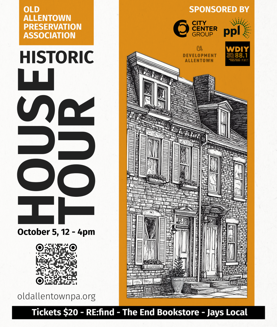 The Old Allentown Annual Historic House Tour will be held on Sunday October 5, 2025 from 12-4pm. This year the tour will feature 5 homes in our district, an artist gallery, an upscale downtown apartment, and a historic cemetery.