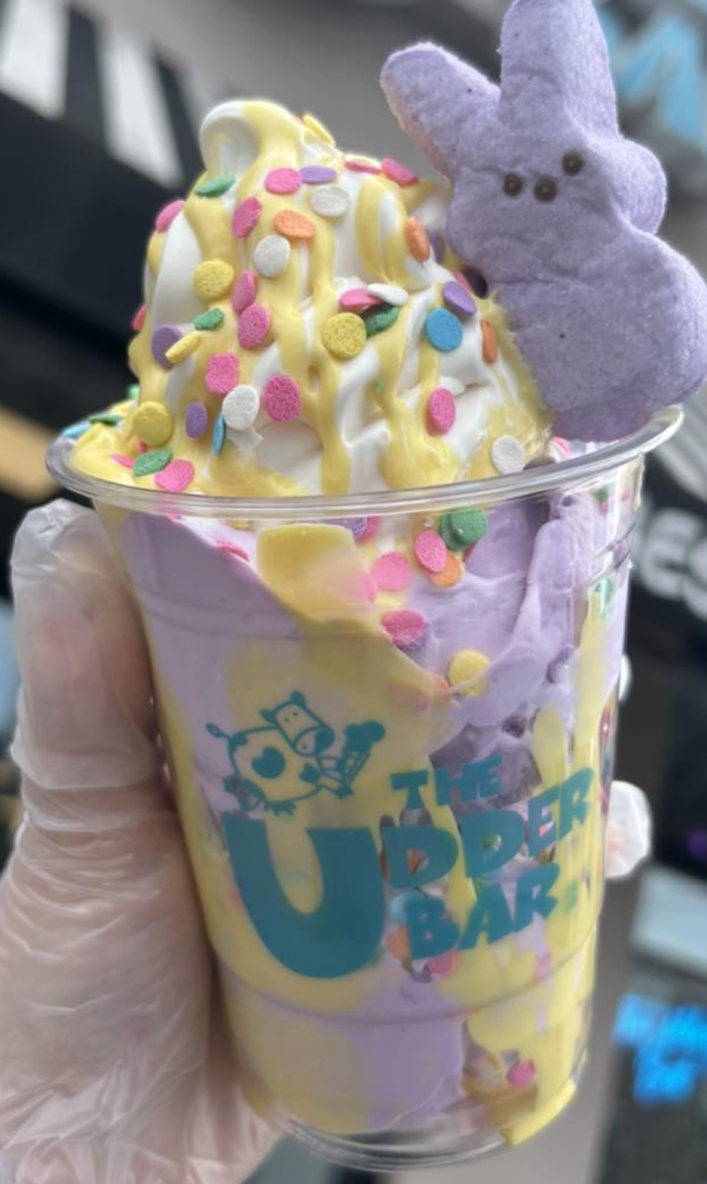 Peep Into Spring - Our April Sundae of the Month is here! Featuring taro ice cream, vanilla soft serve, yellow marshmallow sauce, confetti sprinkles, and a sweet purple bunny peep on top Even sweeter? 10% of proceeds support Valley Youth House!