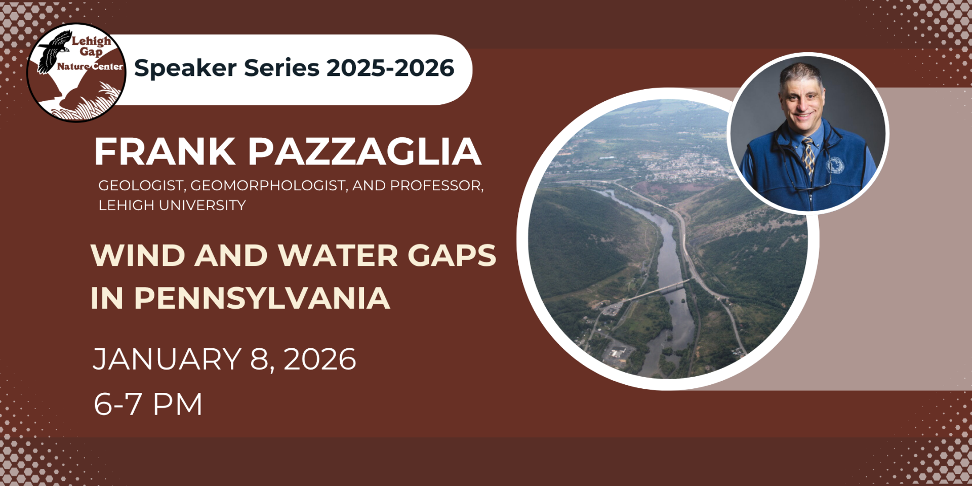 Join us in person at Lehigh Gap Nature Center for a Speaker Series presentation from Frank Pazzaglia, a geologist and geomorphologist who is a professor at Lehigh University. Have you ever wondered how the Lehigh Water Gap came to be? Was it carved by the Lehigh River, or did the Lehigh River form because the gap was already present? This presentation will discuss the geologic foundation of wind and water gaps in Pennsylvania and in the process, explore some big-picture ideas, many of which were spawned in Pennsylvania, of how landscapes change over deep time.