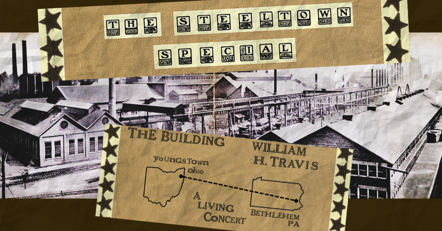 The steeltown special is William h. travis of bethlehem, pennsylvania and the building, anthony lamarca, of youngstown, ohio, whose songs wear the garb of abandoned steel buildings, towns attempting new branches from gnarled and agèd trunks. the songs are not meant to distract you from the sorrows of life, but to acclimate you to the waters and the murk and mire – to find peace in the love and kindness every human spirit has the ability to offer.