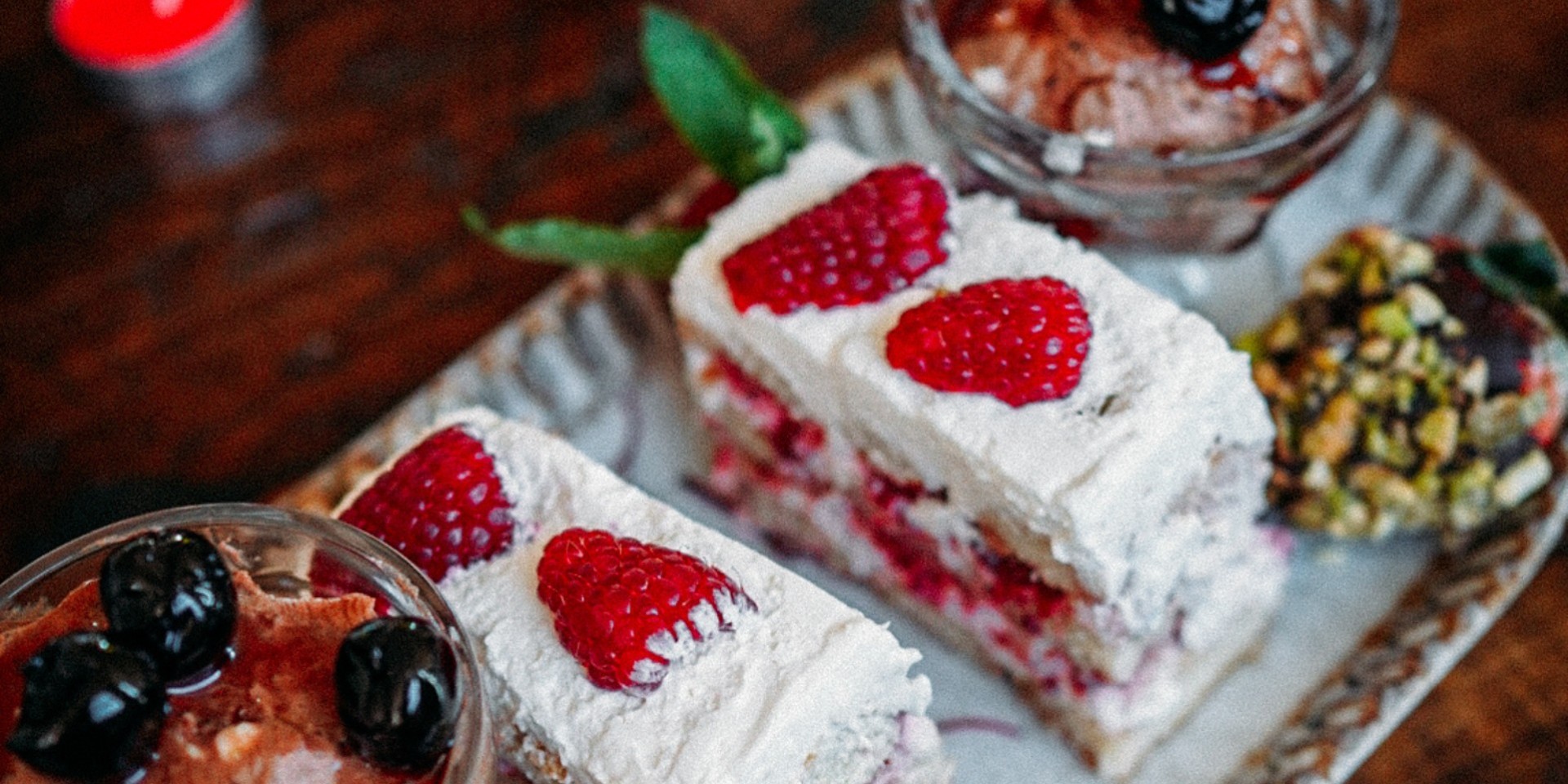 🌹Dolce for Two | Raspberry tiramisu , Pistachio Chocolate Covered Strawberries , Chocolate Mascarpone Mousse topped Italian cherries in syrup