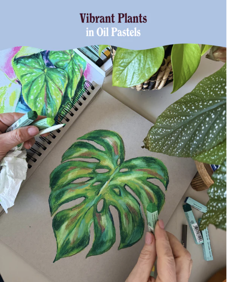 Join fellow plant-lovers, and celebrate the beauty of plants by drawing them with oil pastels, using techniques on blending, layering, and adding expressive movement to capture their organic shapes. With a variety of live house plants as our models, you'll observe shapes and movement of leaves and stems, finding shadows and highlights to capture the plant forms.